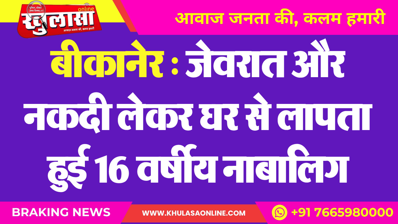 बीकानेर : जेवरात और नकदी लेकर घर से लापता हुई 16 वर्षीय नाबालिग
