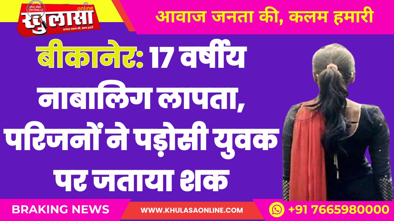 बीकानेर: 17 वर्षीय नाबालिग लापता, परिजनों ने पड़ोसी युवक पर जताया शक
