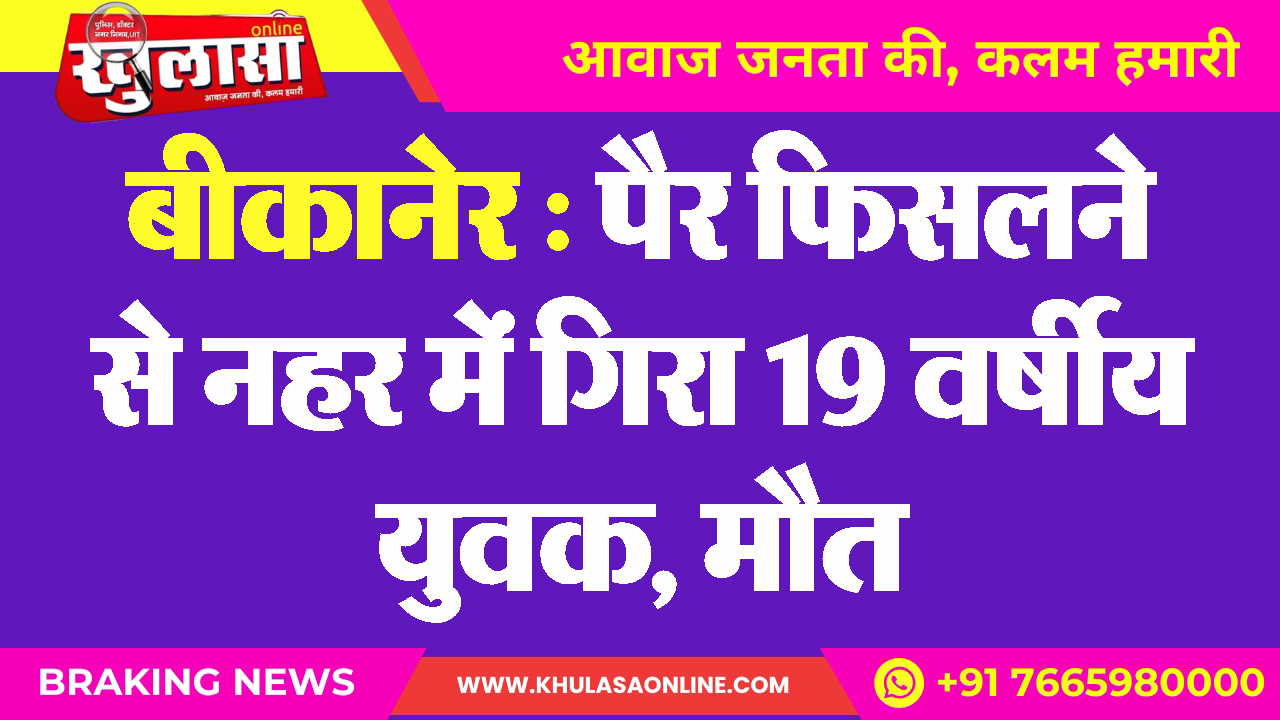 बीकानेर : पैर फिसलने से नहर में गिरा 19 वर्षीय युवक, मौत