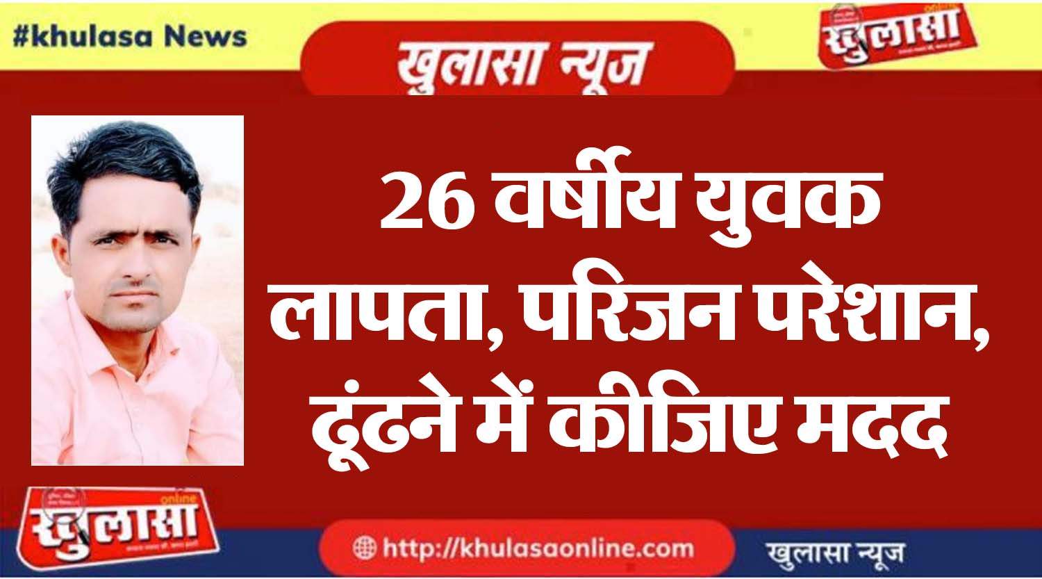 बीकानेर/ 26 वर्षीय युवक लापता, परिजन परेशान, ढूंढऩे में कीजिए मदद