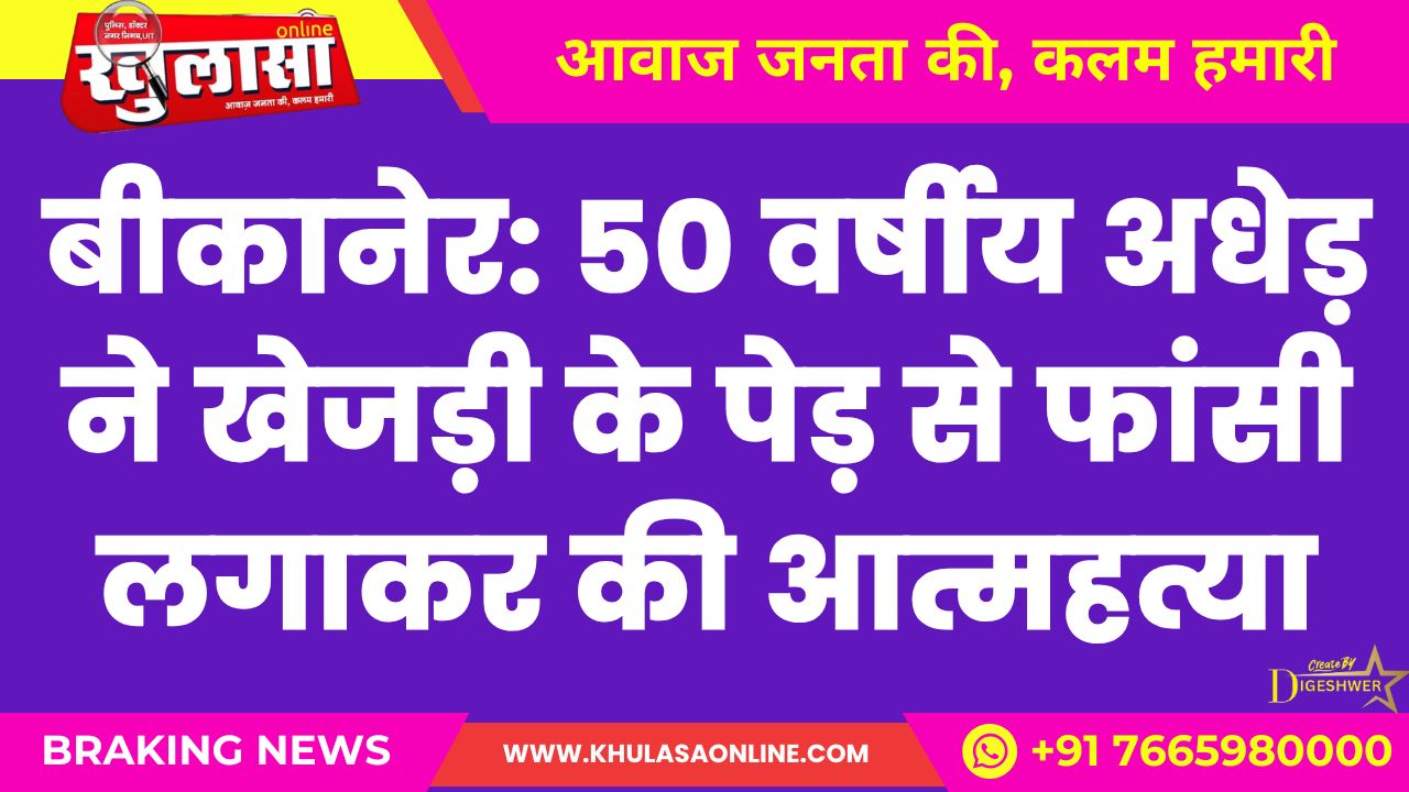 बीकानेर: 50 वर्षीय अधेड़ ने खेजड़ी के पेड़ से फांसी लगाकर की आत्महत्या