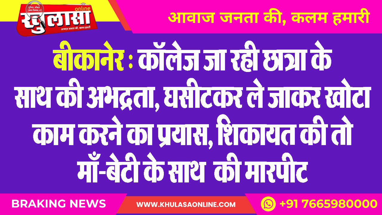 बीकानेर : कॉॅलेेज जा रही छात्रा के साथ की अभद्रता, घसीटकर ले जाकर खोटा काम करने का प्रयास, शिकायत की तो माँ-बेटी के साथ की मारपीट