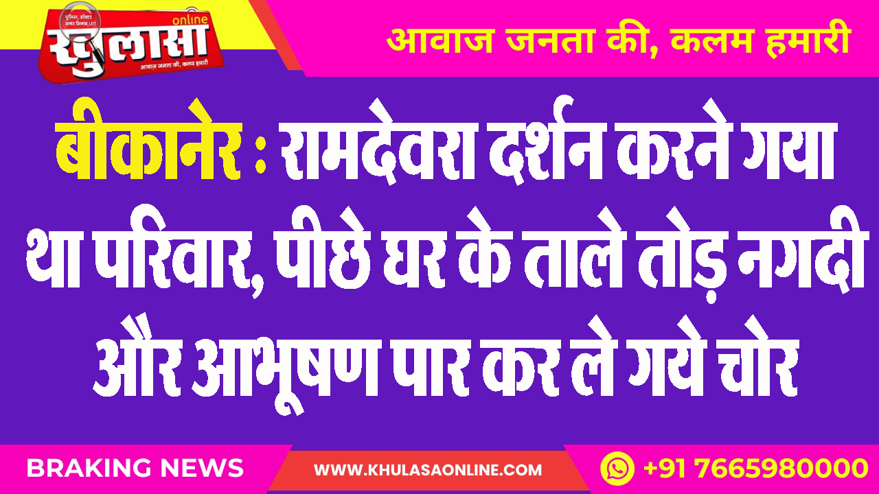 बीकानेर : रामदेवरा दर्शन करने गया था परिवार, पीछे घर के ताले तोड़ नगदी और आभूषण पार कर ले गये चोर