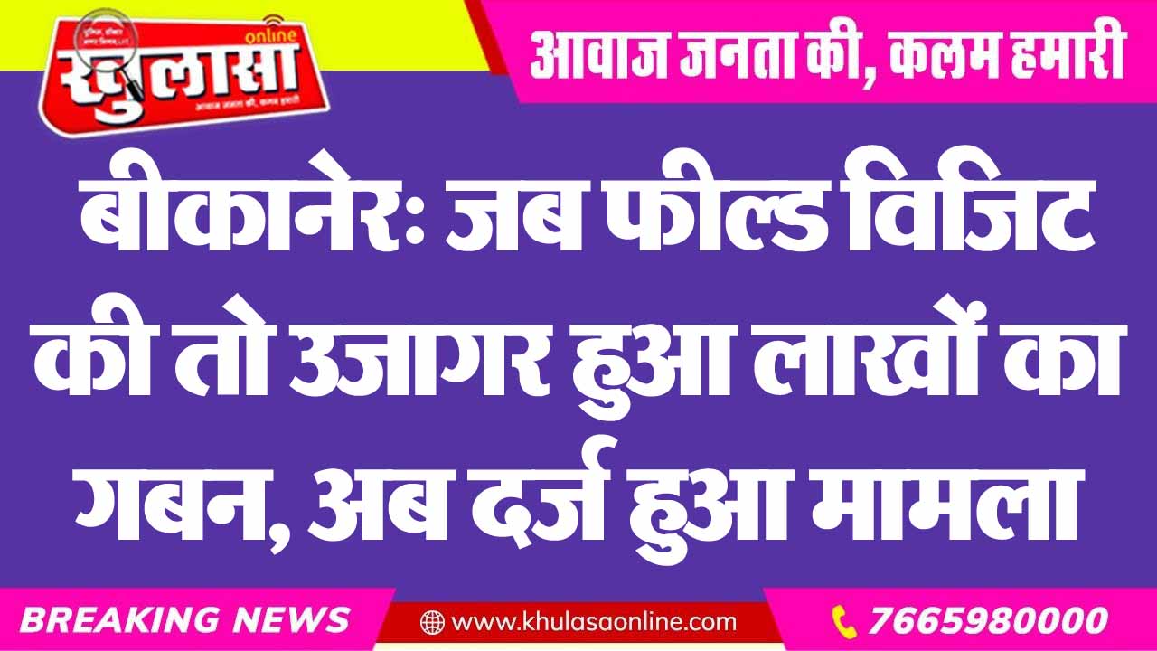 बीकानेर: जब फील्ड विजिट की तो उजागर हुआ लाखों का गबन, अब दर्ज हुआ मामला