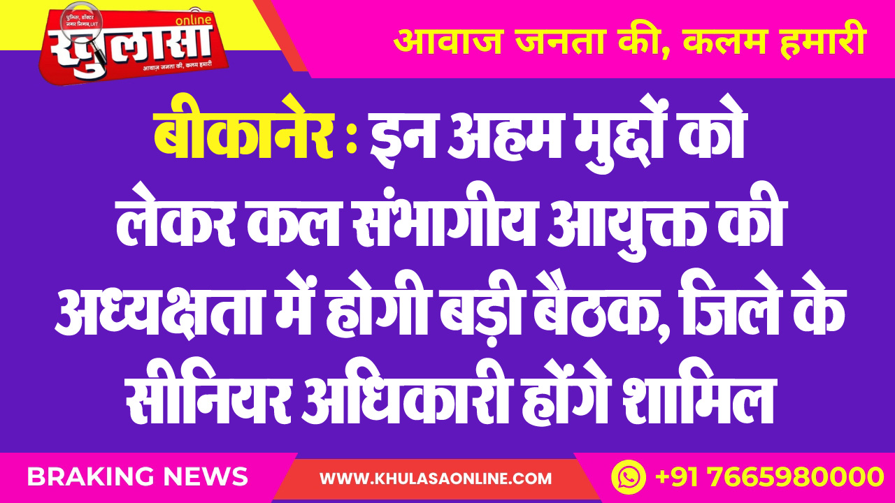 बीकानेर : इन अहम मुद्दों को लेकर कल संभागीय आयुक्त की अध्यक्षता में होगी बड़ी बैठक, जिले के सीनियर अधिकारी होंगे शामिल