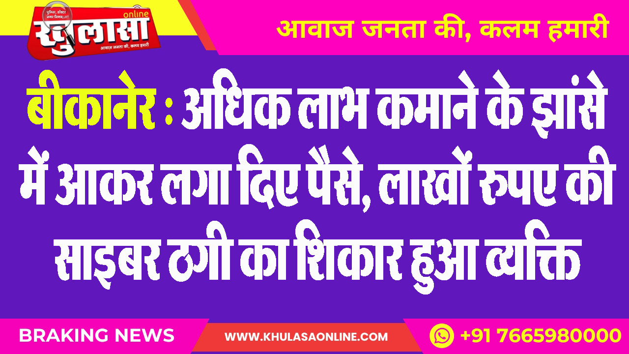 बीकानेर : अधिक लाभ कमाने के झांसे में आकर लगा दिए पैसे, लाखों रुपए की साइबर ठगी का शिकार हुआ व्यक्ति