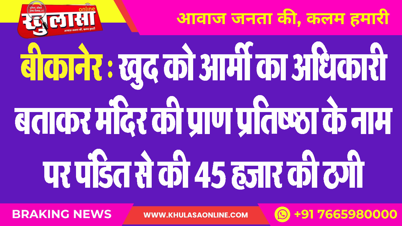 बीकानेर : खुद को आर्मी का अधिकारी बताकर मंदिर की प्राण प्रतिष्ष्ठा के नाम पर पंडित से की 45 हजार की ठगी