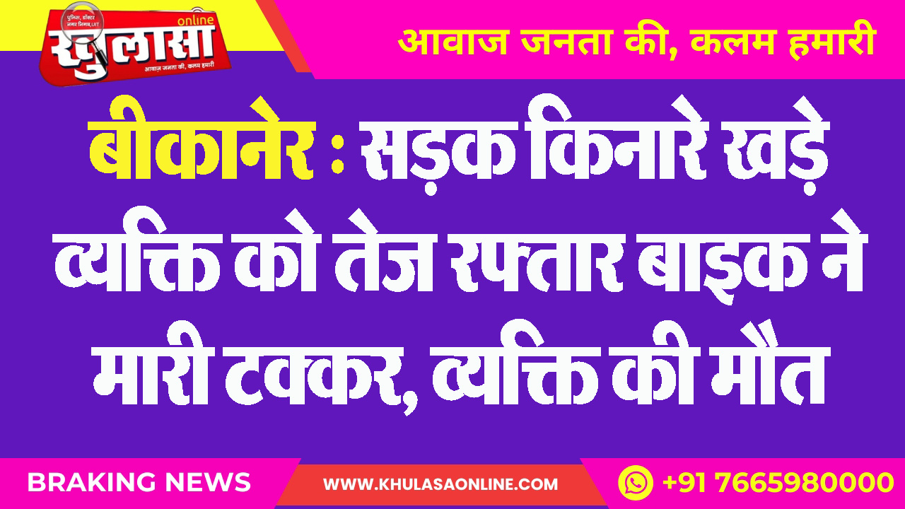 बीकानेर : सडक़ किनारे खड़े व्यक्ति को तेज रफ़्तार बाइक ने मारी टक्कर, व्यक्ति की मौत