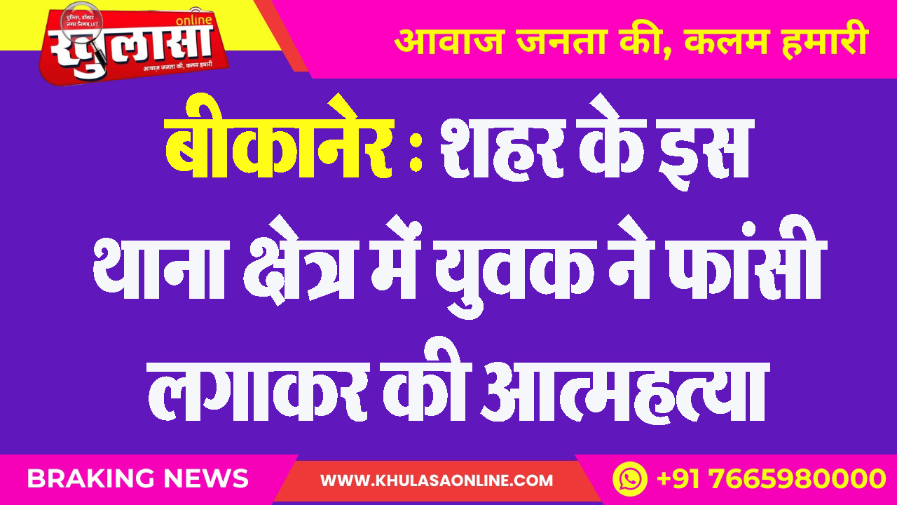 बीकानेर : शहर के इस थाना क्षेत्र में युवक ने फांसी लगाकर की आत्महत्या