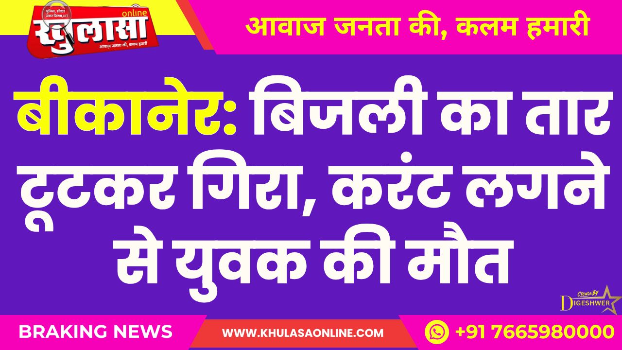 बीकानेर: बिजली का तार टूटकर गिरा, करंट लगने से युवक की मौत