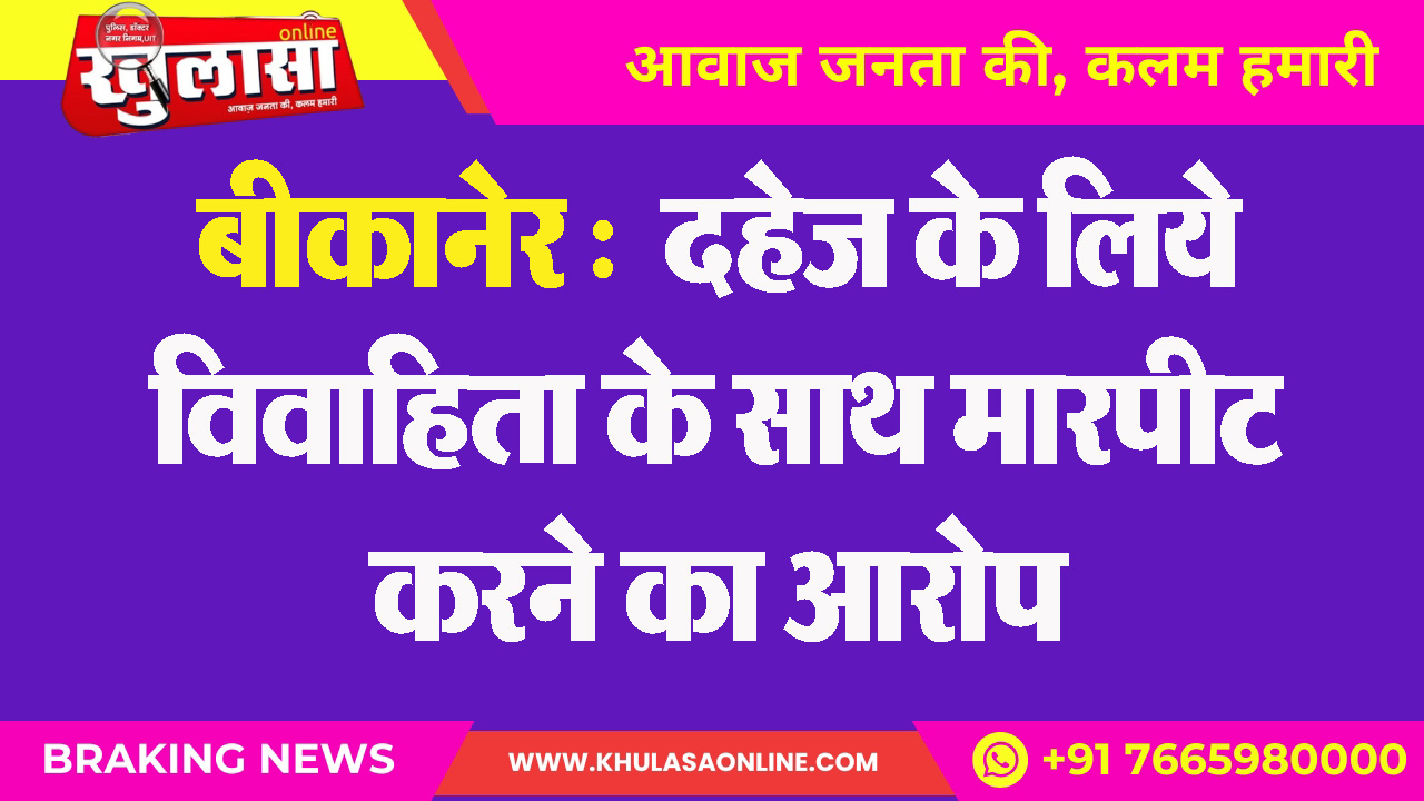 बीकानेर : दहेज के लिये विवाहिता के साथ मारपीट करने का आरोप