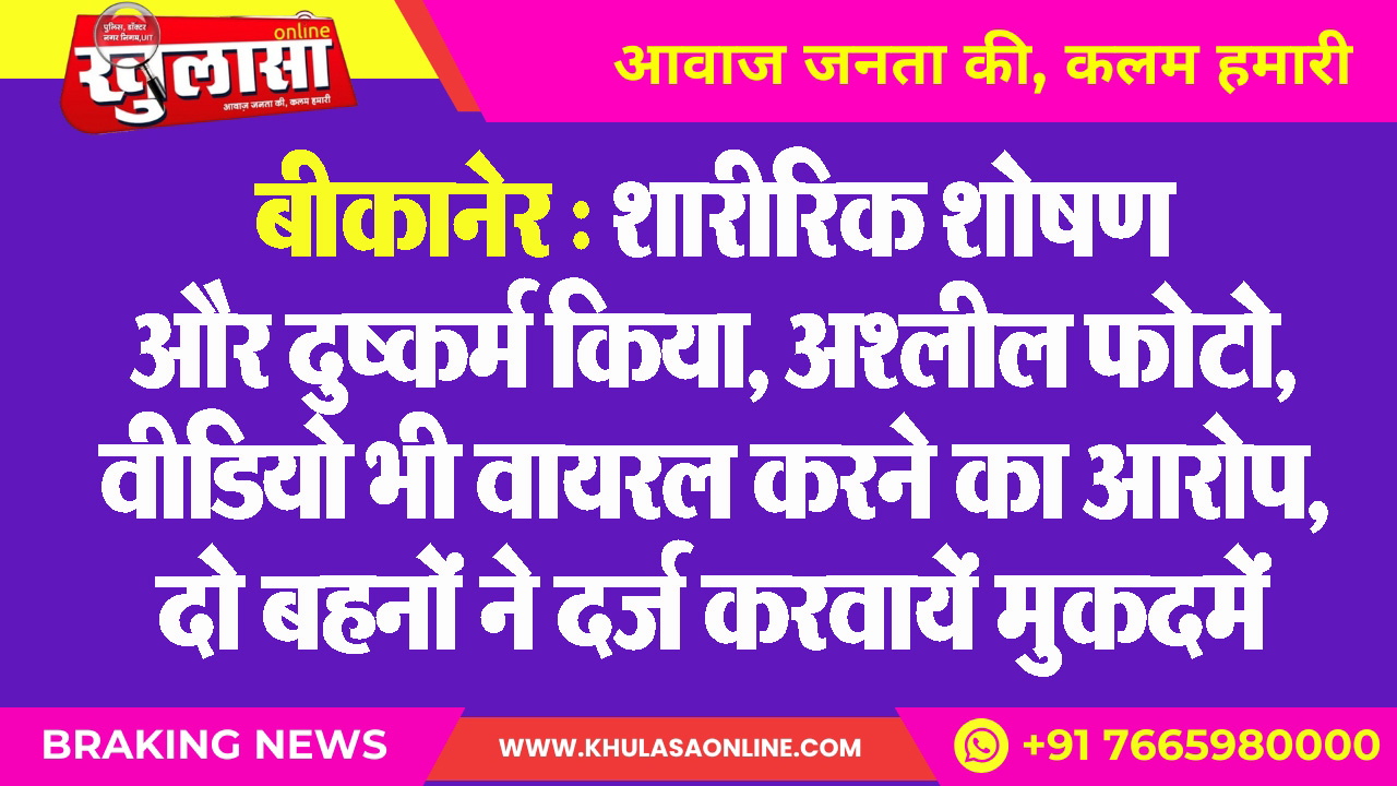 बीकानेर : शारीरिक शोषण और दुष्कर्म किया, अश्लील फोटो, वीडियो भी वायरल करने का आरोप, दो बहनों ने दर्ज करवायें मुकदमें
