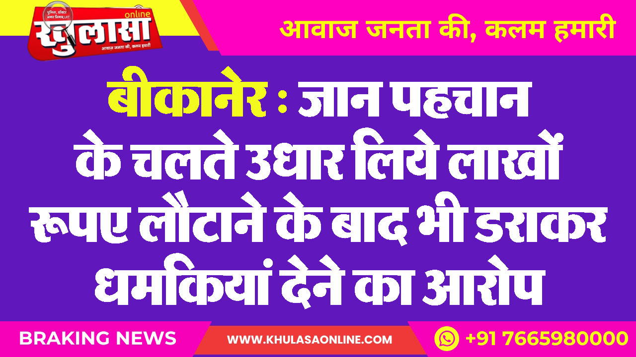 बीकानेर : जान पहचान के चलते उधार लिये लाखों रूपए लौटाने के बाद भी डराकर धमकियां देने का आरोप