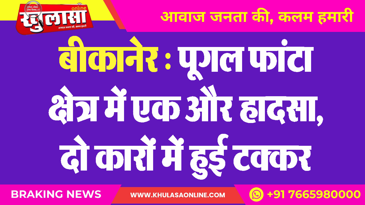 बीकानेर : पूगल फांटा क्षेत्र में एक और हादसा, दो कारों में हुई टक्कर