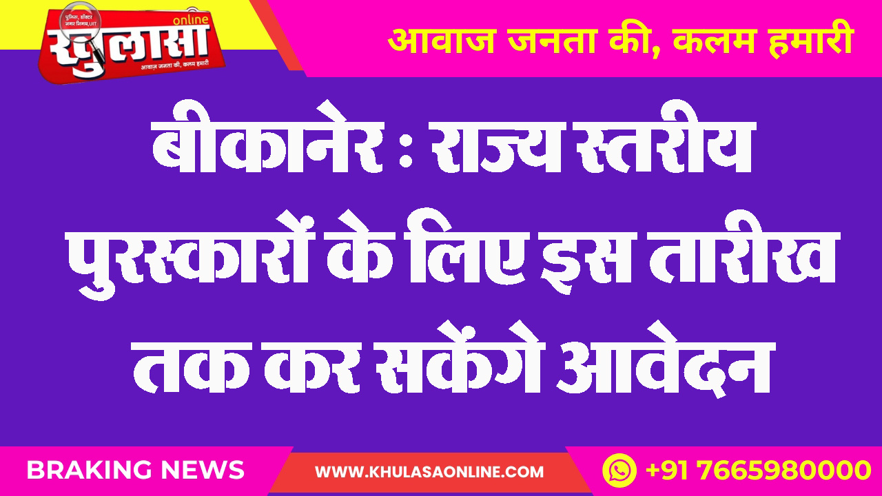 बीकानेर : राज्य स्तरीय पुरस्कारों के लिए इस तारीख तक कर सकेंगे आवेदन