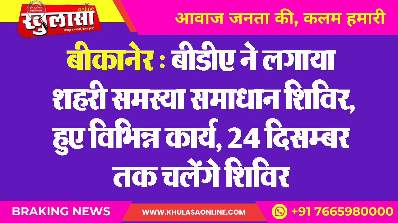 बीकानेर : बीडीए ने लगाया शहरी समस्या समाधान शिविर, हुए विभिन्न कार्य, 24 दिसम्बर तक चलेंगे शिविर