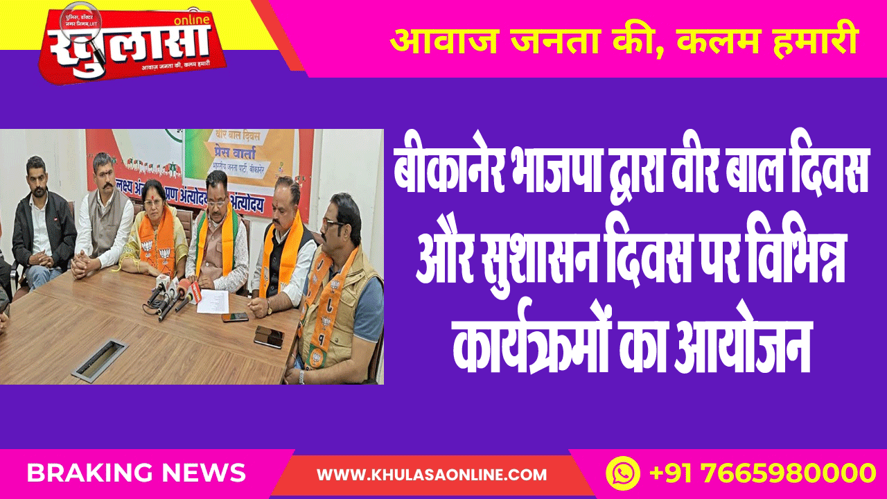 बीकानेर भाजपा द्वारा वीर बाल दिवस और सुशासन दिवस पर विभिन्न कार्यक्रमों का आयोजन