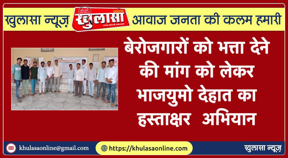 खुलासा न्यूज़ , बीकानेर । राजस्थान की कांग्रेस सरकार द्वारा भर्ती परीक्षाओं में किए गए घोटालों के विरोध में तथा बेरोजगारों के लिए भत्ते की मांग को लेकर आज बीकानेर देहात सभी मंडलों पर हस्ताक्षर अभियान की शुरुवात की, भाजयुमो देहात आगामी 45 दिन में तीन चरणों में, एक लाख हस्ताक्षर का लक्ष्य लेकर अभियान की शुरुवात की, बीकानेर जिला के