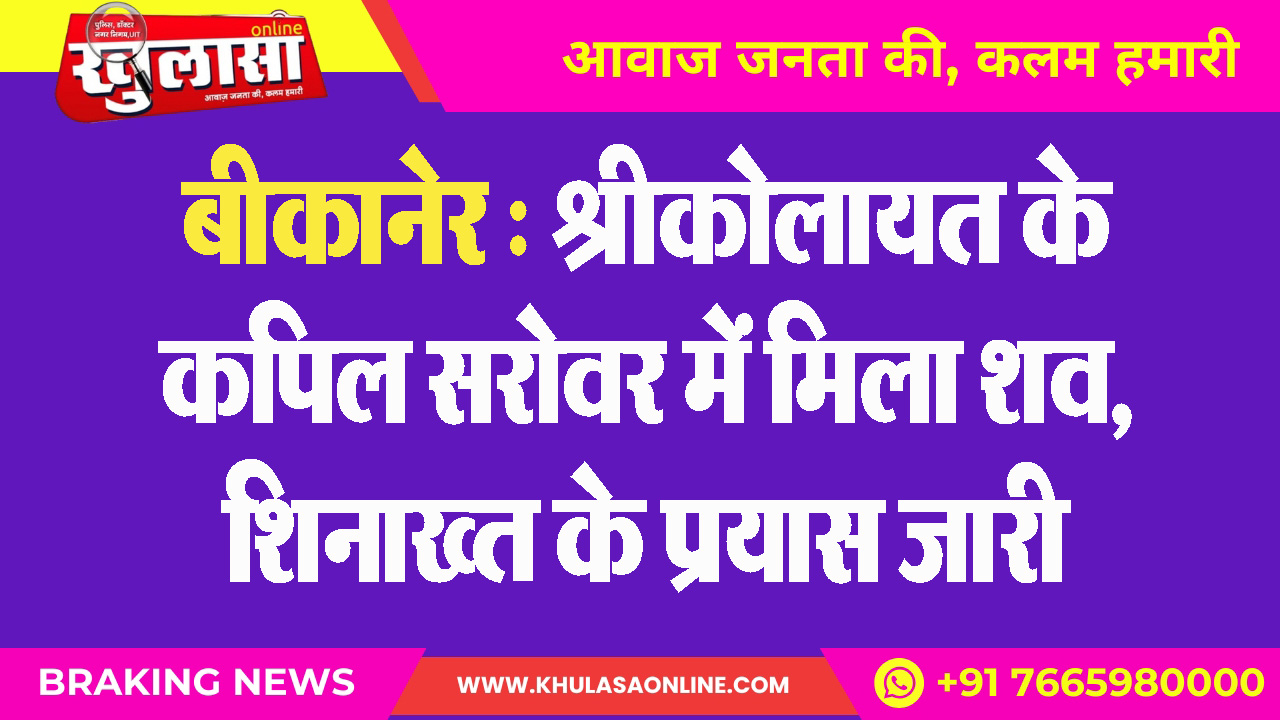 बीकानेर : श्रीकोलायत के कपिल सरोवर में मिला शव, शिनाख्त के प्रयास जारी