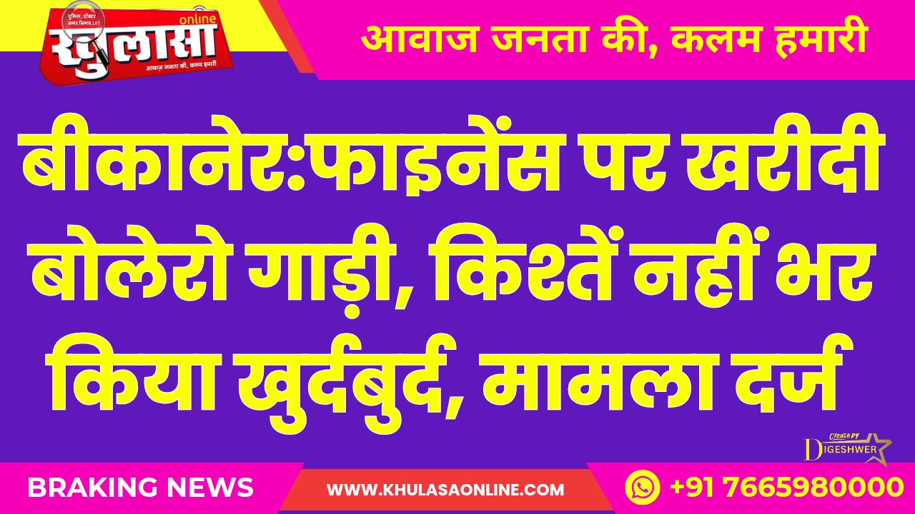 बीकानेर:फाइनेंस पर खरीदी बोलेरो गाड़ी, किश्तें नहीं भर किया खुर्दबुर्द, मामला दर्ज