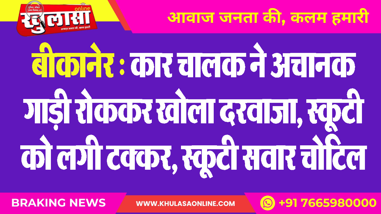 बीकानेर : कार चालक ने अचानक गाड़ी रोककर खोला दरवाजा, स्कूटी को लगी टक्कर, स्कूटी सवार चोटिल