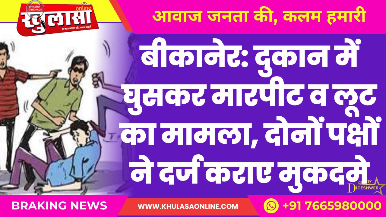 बीकानेर: दुकान में घुसकर मारपीट व लूट का मामला, दोनों पक्षों ने दर्ज कराए मुकदमे