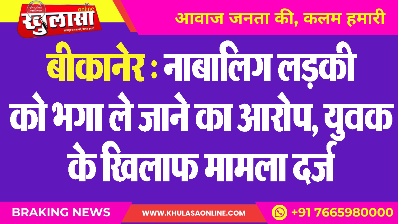 बीकानेर : नाबालिग लडक़ी को भगा ले जाने का आरोप, युवक के खिलाफ मामला दर्ज