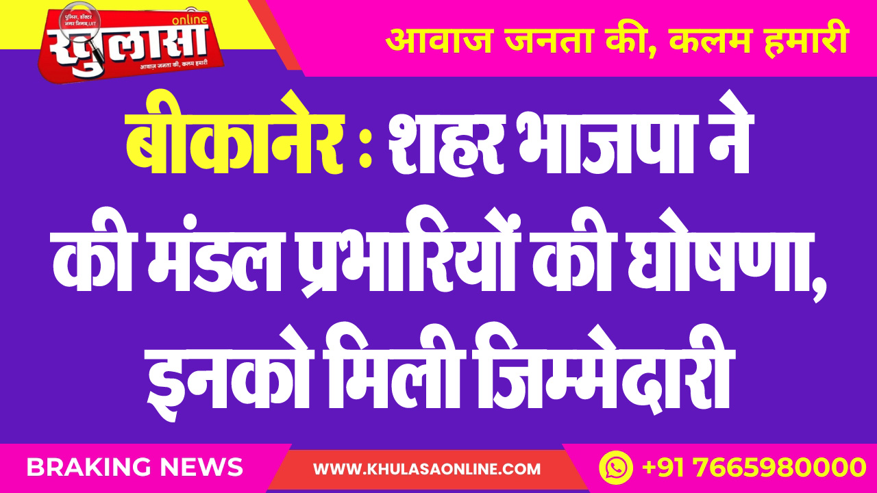 बीकानेर : शहर भाजपा ने की मंडल प्रभारियों की घोषणा, इनको मिली जिम्मेदारी