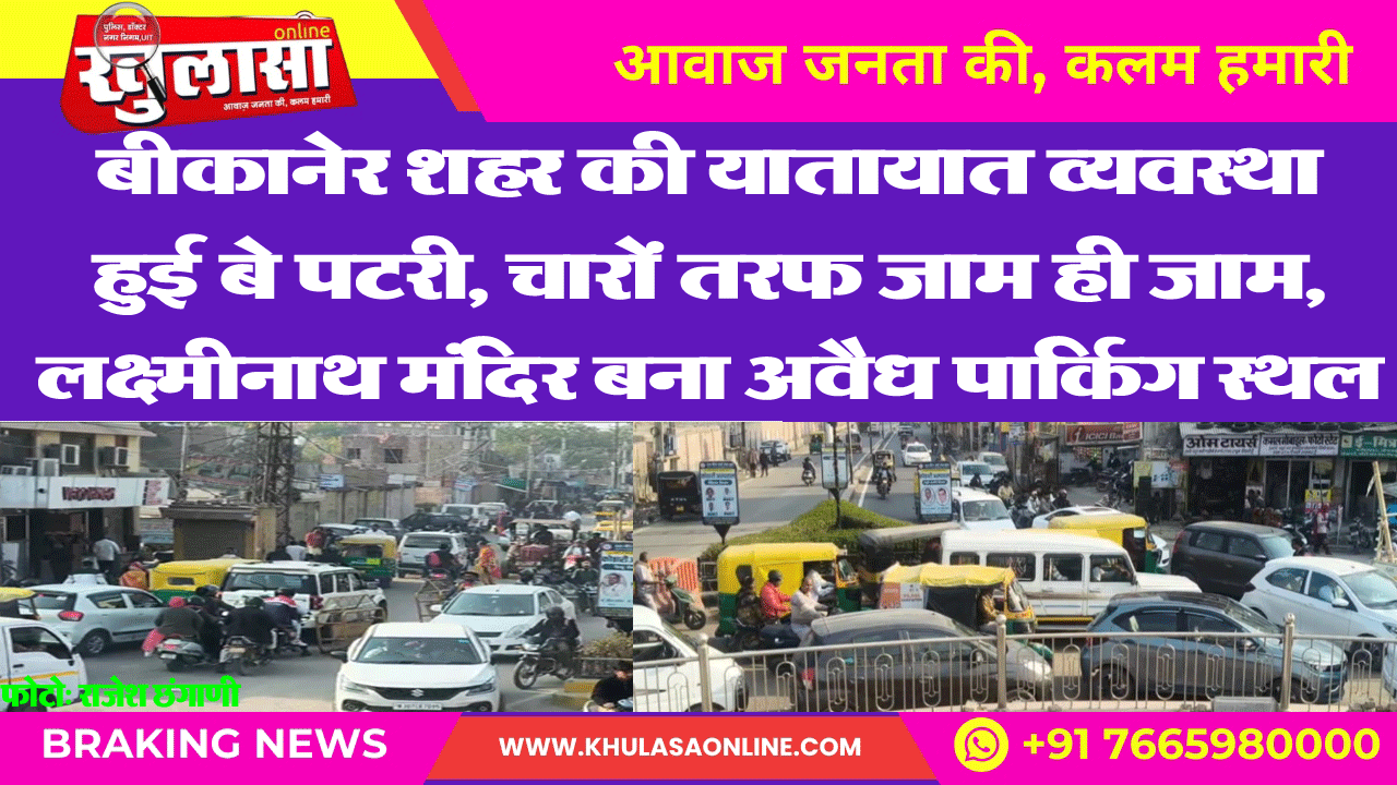 बीकानेर शहर की यातायात व्यवस्था हुई बे पटरी, चारों तरफ जाम ही जाम,लक्ष्मीनाथ मंदिर बना अवैध पार्किग स्थल