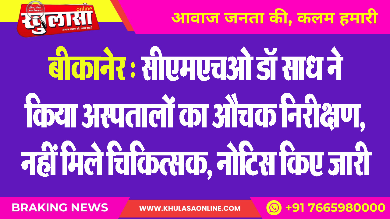 बीकानेर : सीएमएचओ डॉ साध ने किया अस्पतालों का औचक निरीक्षण, नहीं मिले चिकित्सक, नोटिस किए जारी