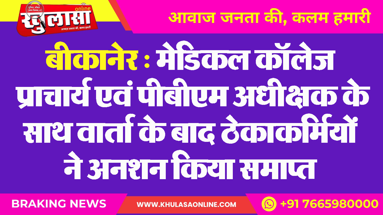 बीकानेर : मेडिकल कॉलेज प्राचार्य एवं पीबीएम अधीक्षक के साथ वार्ता के बाद ठेकाकर्मियों ने अनशन किया समाप्त