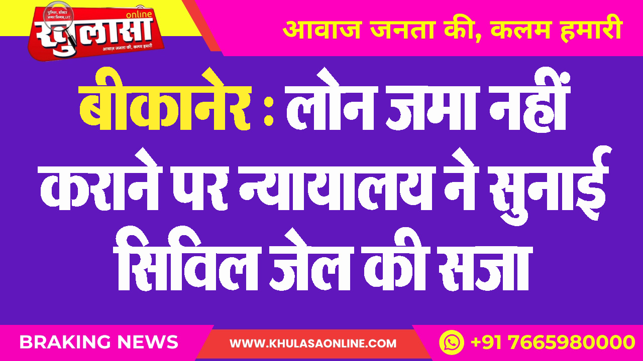 बीकानेर : लोन जमा नहीं कराने पर न्यायालय ने सुनाई सिविल जेल की सजा