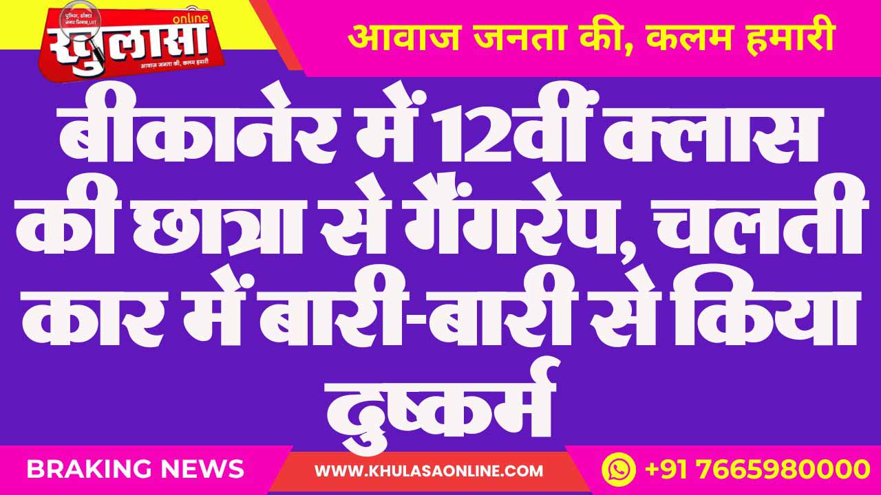 बीकानेर में 12वीं क्लास की छात्रा से गैंगरेप, चलती कार में बारी-बारी से किया दुष्कर्म