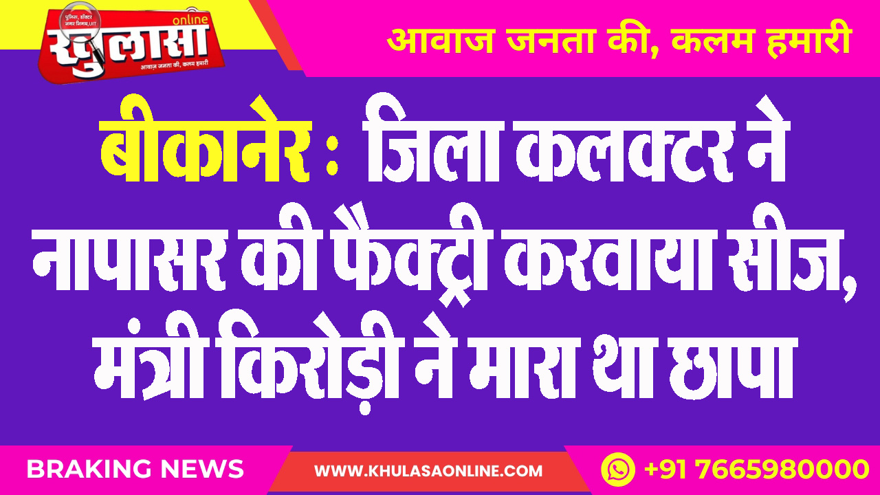 बीकानेर : जिला कलक्टर ने नापासर की फैक्ट्री करवाया सीज, मंत्री किरोड़ी ने मारा था छापा