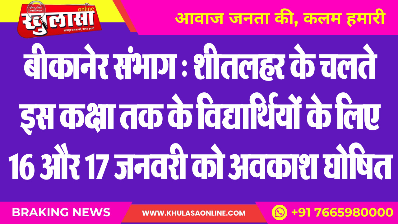 बीकानेर संभाग : शीतलहर के चलते इस कक्षा तक के विद्यार्थियों के लिए 16 और 17 जनवरी को अवकाश घोषित