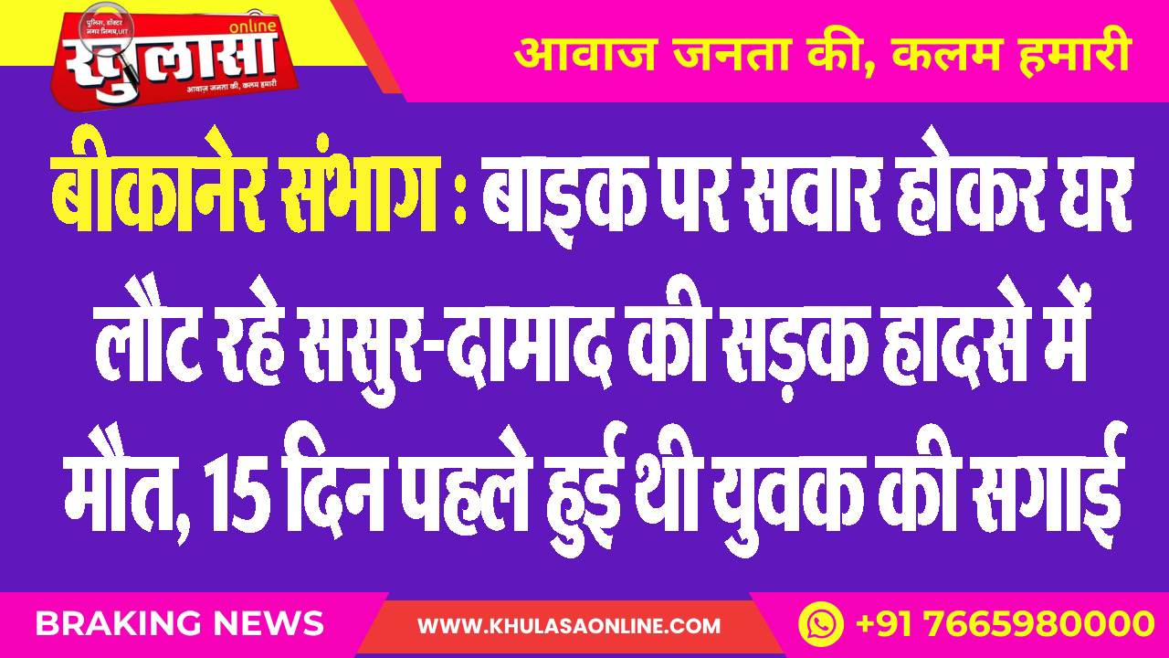 बीकानेर संभाग : बाइक पर सवार होकर घर लौट रहे ससुर-दामाद की सडक़ हादसे में मौत, 15 दिन पहले हुई थी युवक की सगाई