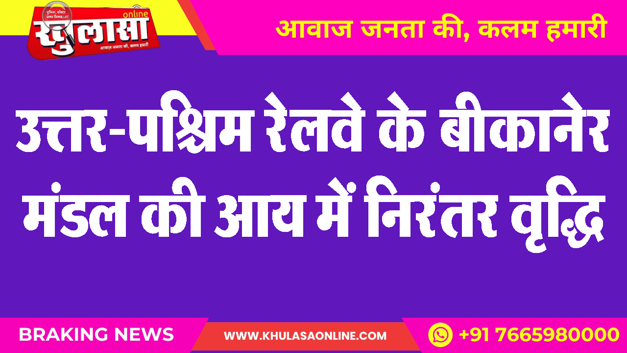 उत्तर-पश्चिम रेलवे के बीकानेर मंडल की आय में निरंतर वृद्धि