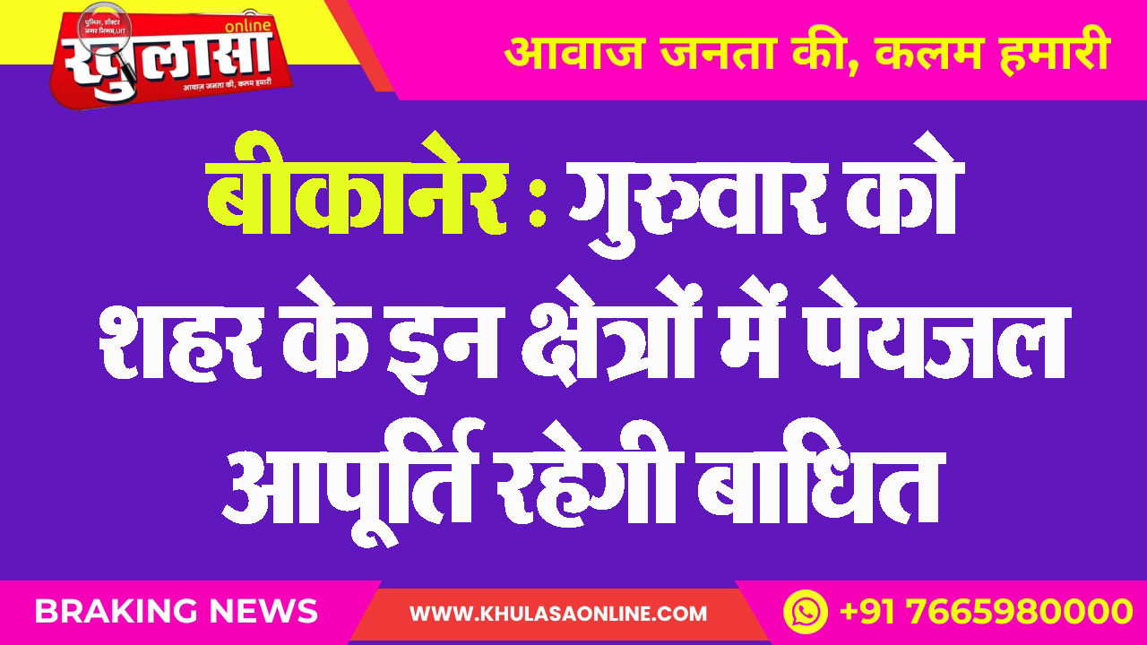 बीकानेर : गुरुवार को शहर के इन क्षेत्रों में पेयजल आपूर्ति रहेगी बाधित