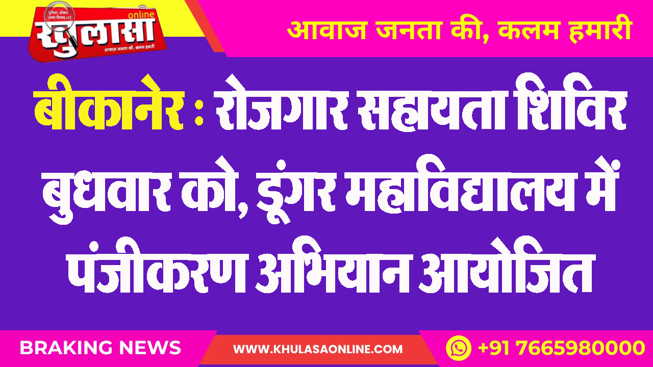 बीकानेर : रोजगार सहायता शिविर बुधवार को, डूंगर महाविद्यालय में पंजीकरण अभियान आयोजित