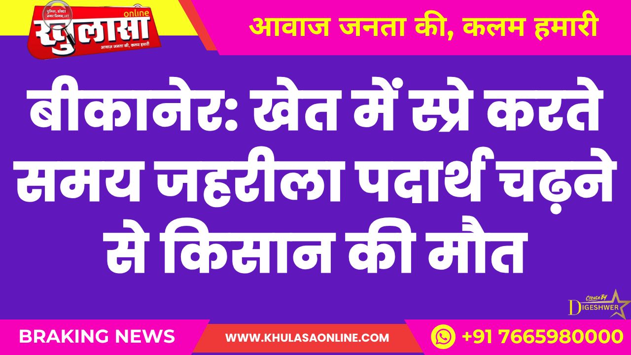 बीकानेर: खेत में स्प्रे करते समय जहरीला पदार्थ चढ़ने से किसान की मौत