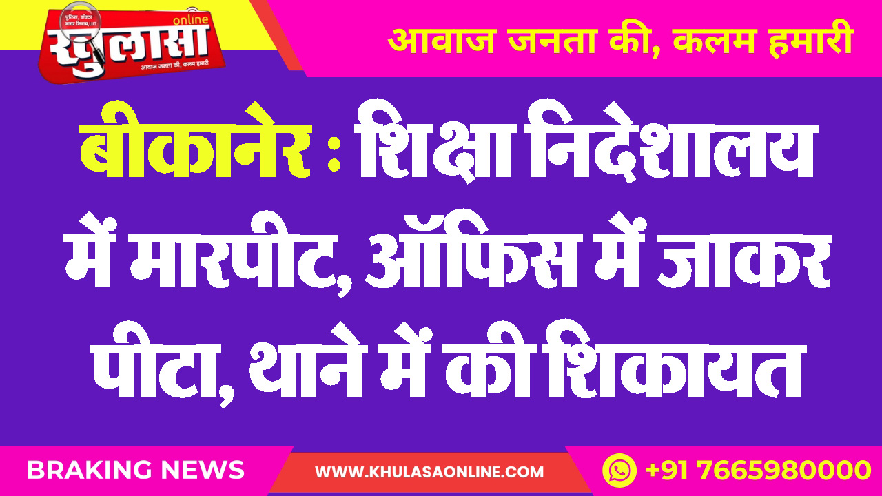 बीकानेर : शिक्षा निदेशालय में मारपीट, ऑफिस में जाकर पीटा,थाने में की शिकायत