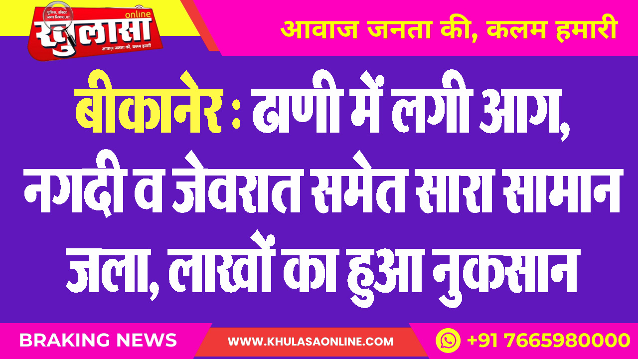 बीकानेर : ढाणी में लगी आग, नगदी व जेवरात समेत सारा सामान जला, लाखों का हुआ नुकसान