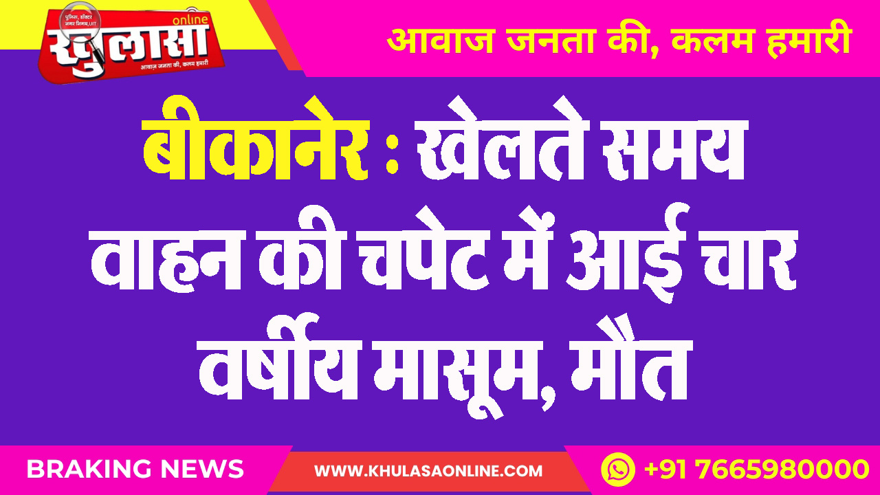बीकानेर : खेलते समय वाहन की चपेट में आई चार वर्षीय मासूम, मौत