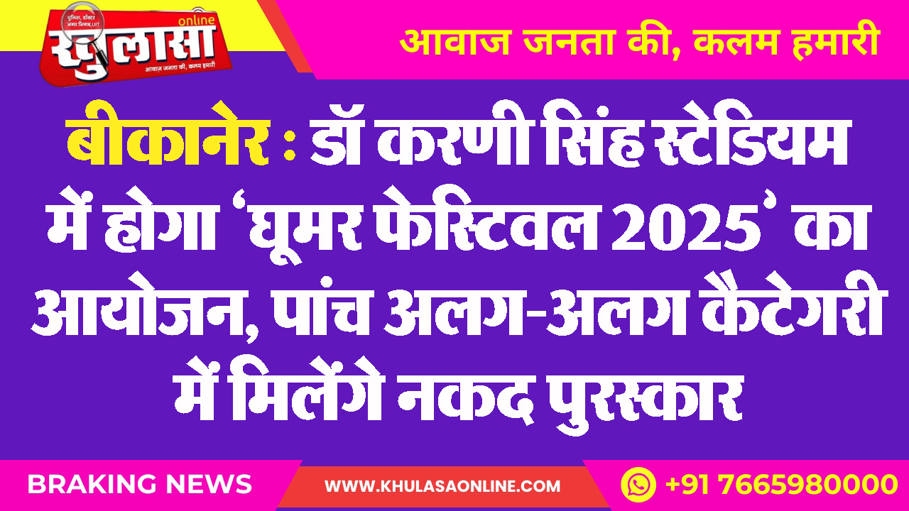 बीकानेर : डॉ करणी सिंह स्टेडियम में होगा ‘घूमर फेस्टिवल 2025’ का आयोजन, पांच अलग-अलग कैटेगरी में मिलेंगे नकद पुरस्कार