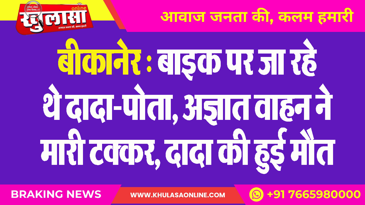 बीकानेर : बाइक पर जा रहे थे दादा-पोता, अज्ञात वाहन ने मारी टक्कर, दादा की हुई मौत