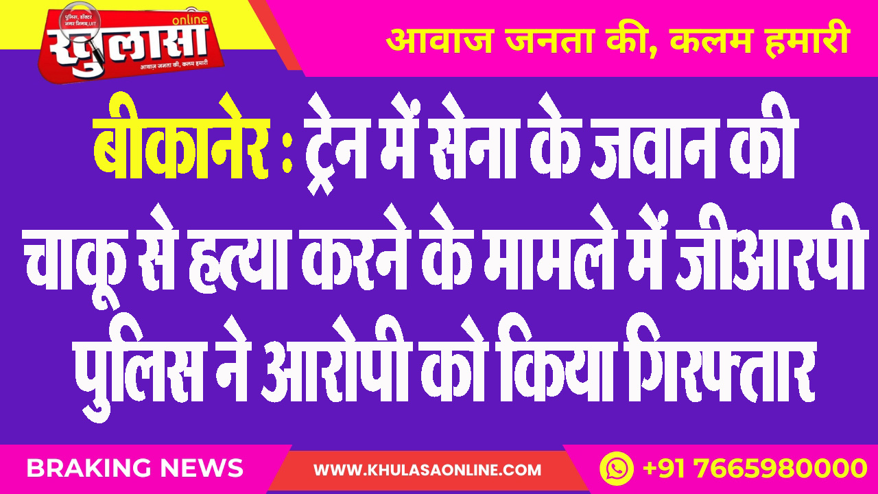 बीकानेर : ट्रेन में सेना के जवान की चाकू से हत्या करने के मामले में जीआरपी पुलिस ने आरोपी को किया गिरफ्तार