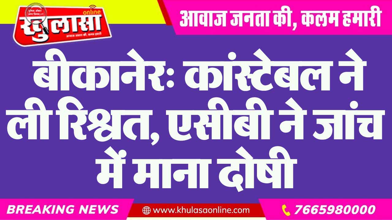 बीकानेर: कांस्टेबल ने ली रिश्वत, एसीबी ने जांच में माना दोषी