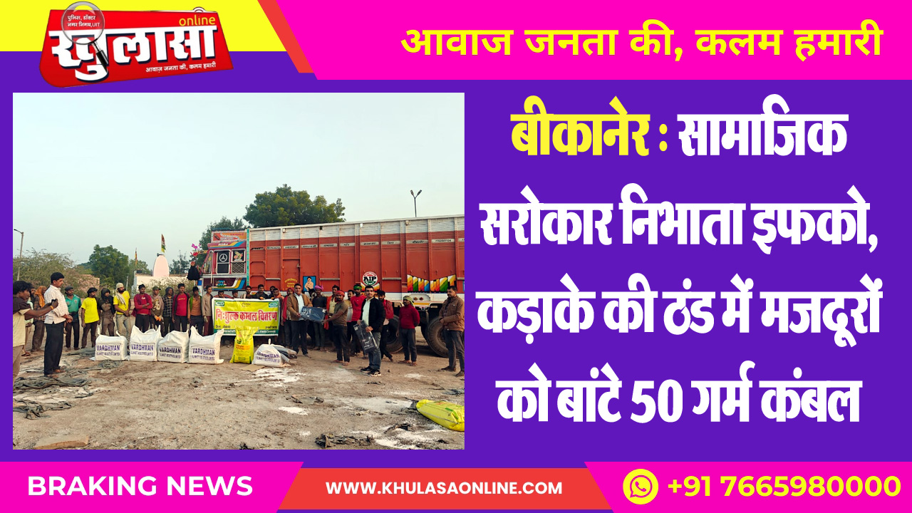 बीकानेर : सामाजिक सरोकार निभाता इफको, कड़ाके की ठंड में मजदूरों को बांटे 50 गर्म कंबल