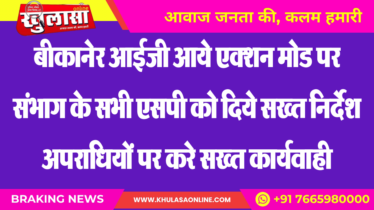 बीकानेर आईजी आये एक्शन मोड पर, संभाग के सभी एसपी को दिये सख्त निर्देश अपराधियों पर करे सख्त कार्यवाही