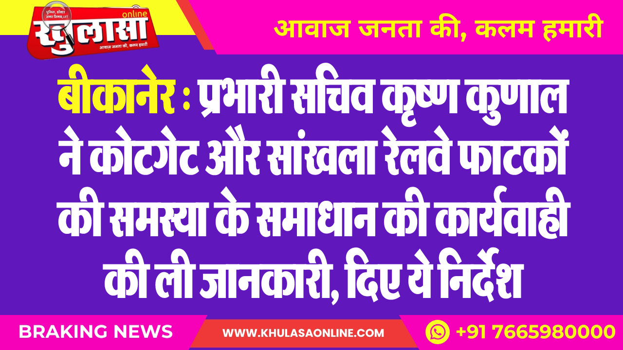 बीकानेर : प्रभारी सचिव कृष्ण कुणाल ने कोटगेट और सांखला रेलवे फाटकों की समस्या के समाधान की कार्यवाही की ली जानकारी, दिए ये निर्देश